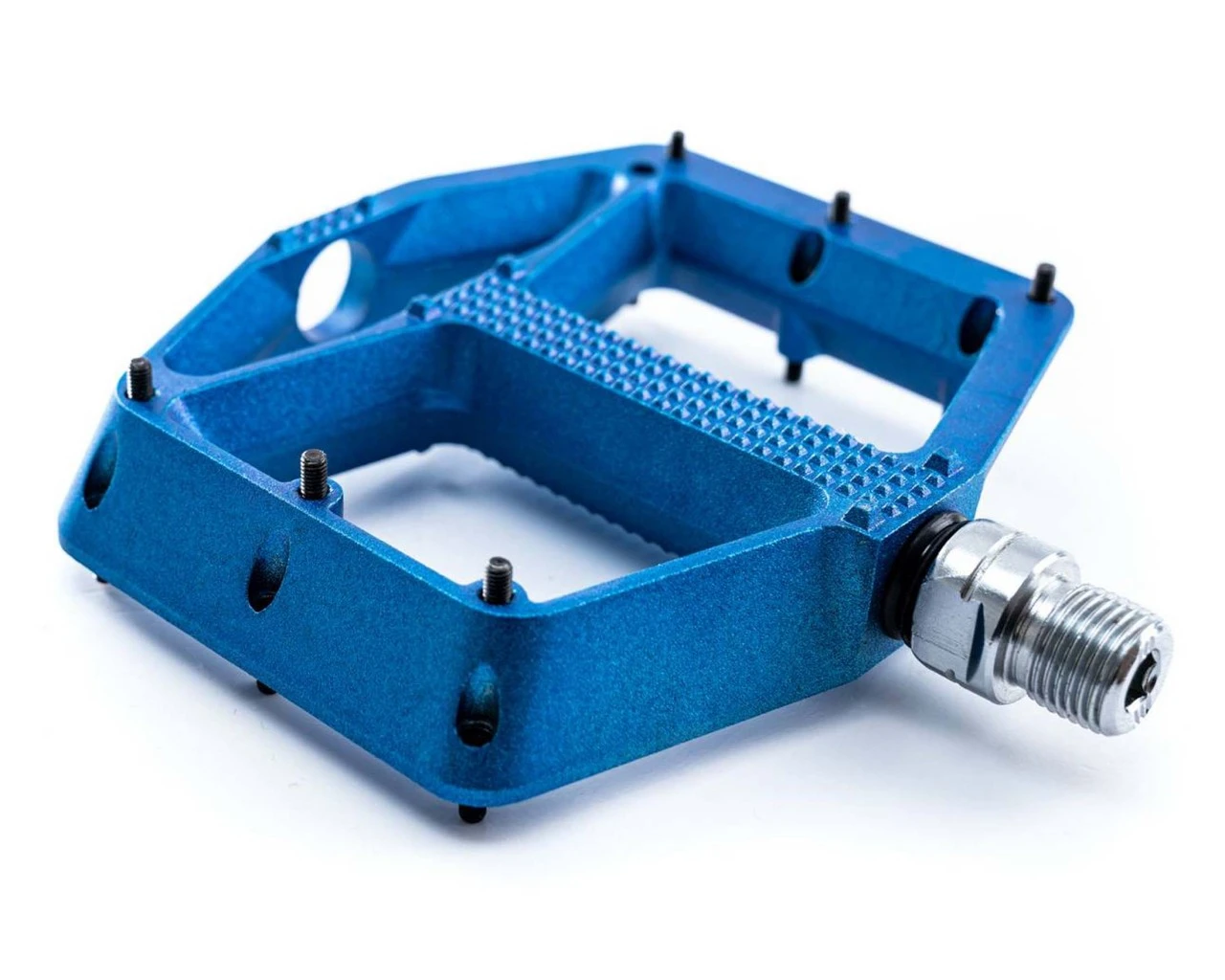 leichtes Flat-Pedal; Aluminiumkörper und CrMo Achse; angefaste Kanten für erhöhte Bodenfreiheit in Kurven; große Standfläche; flache Bauweise; elf Pins pro Seite; LSL-Bushing